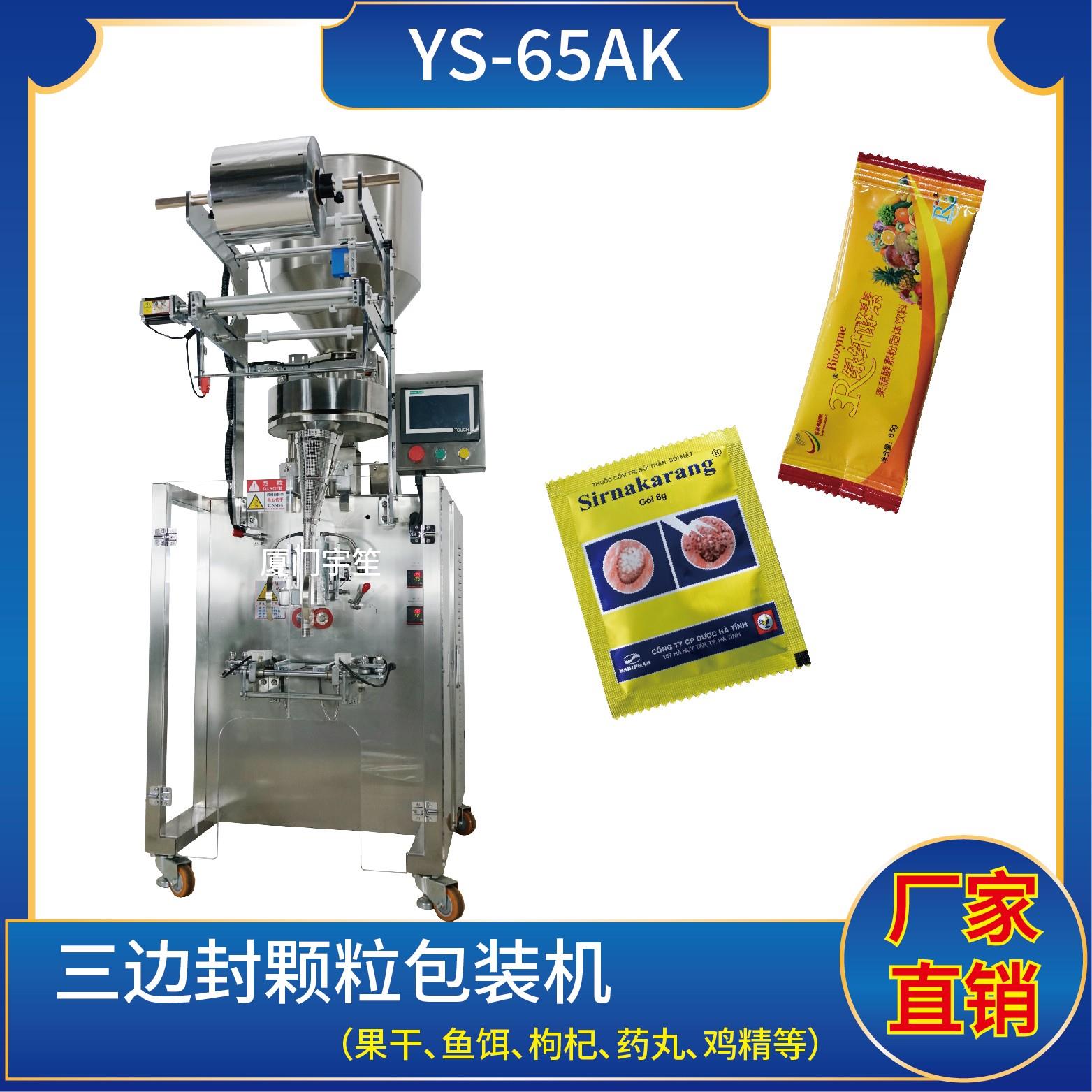 YP-65AK 三邊封顆粒包裝機特 點 1、適用于食品、醫(yī)藥、化工、化妝品行業(yè)中顆粒物品的計量包裝。2、可自動完成制袋、計量、下料、封合、分切、計數(shù)、且可根據(jù)客戶要求配置打印批號等功能。3、觸摸屏操作,PLC 控制,驅(qū)動步進電機控制袋長,性能穩(wěn)定、調(diào)整方便、檢測準確。智能式溫控儀,PID調(diào)節(jié),保證將溫度的誤差范圍控制…