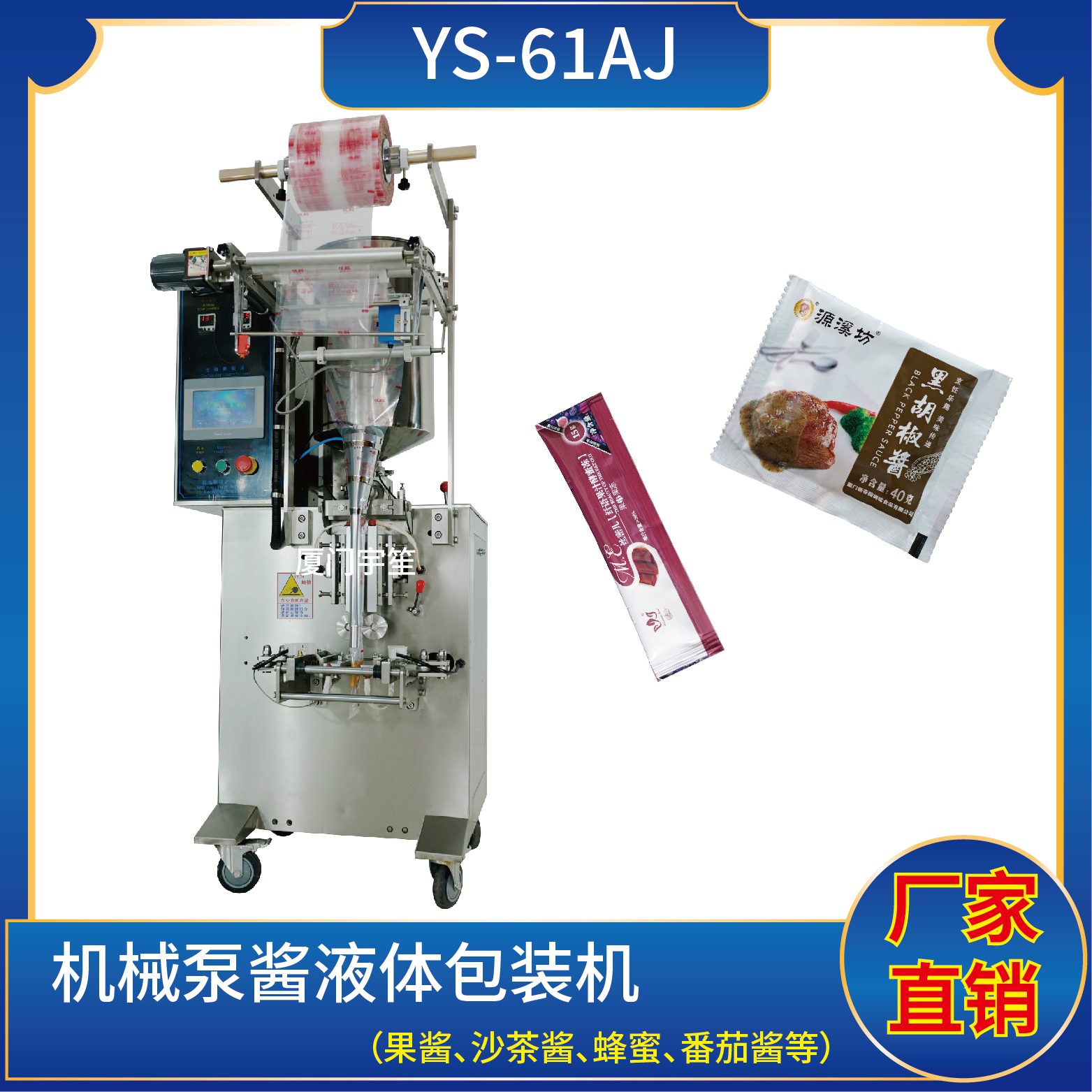 1、適用于食品、醫(yī)藥、化工、化妝品行業(yè)中液體、醬料物品的計量包裝,如:番茄醬、辣椒醬、黑胡椒醬、貓條等。