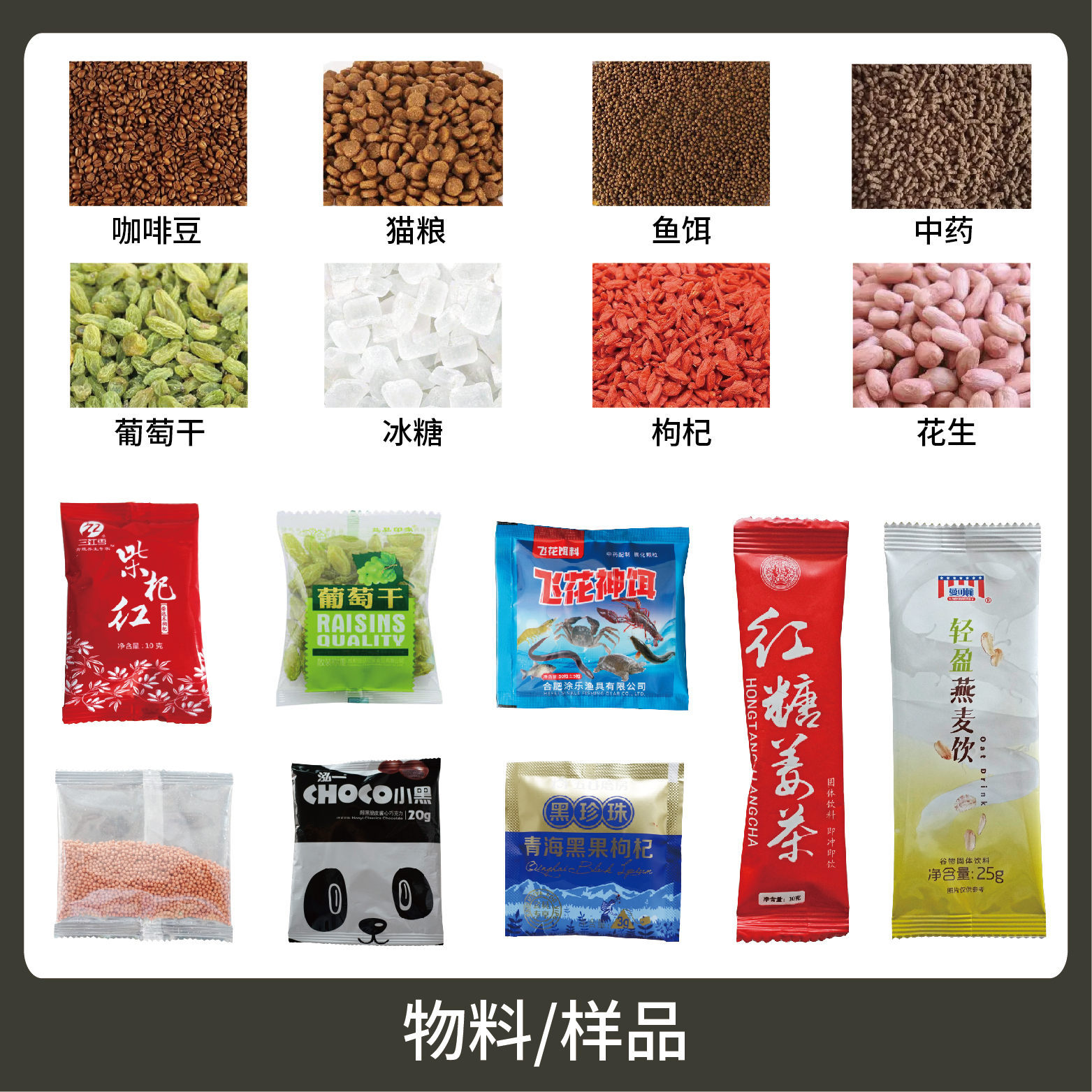 適用于食品、醫(yī)藥、化工、化妝品行業(yè)中顆粒物品的計(jì)量包裝,如:奶茶、咖啡、貓糧、狗糧等。